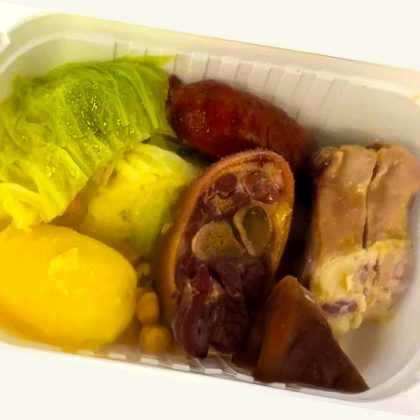 Elaboración tradicional da gastronomía galega na que os protagonistas son produtos con Indicación xeográfica protexida. Lacón, Pataca e Grelos.